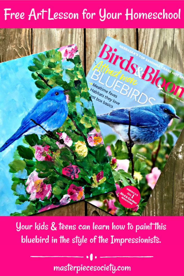 Designed to supplement homeschooling parents, this online program includes a yearly studio membership option, allows for a la carte purchases, and offers a FREE Impressionist Bird lesson.